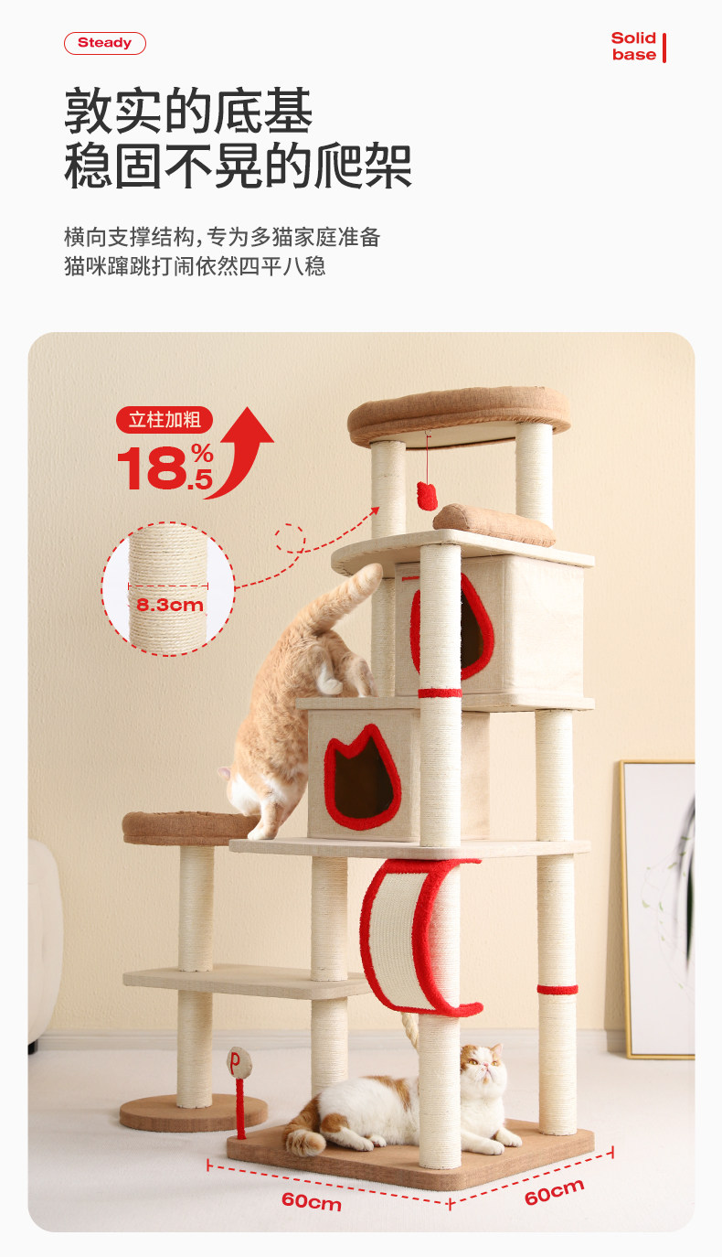 Cat climbing frame XS-60 * 40 * h70cm Cat climbing frame S-60 * 60 * h125cm Cat climbing frame M-60*60*h165cm