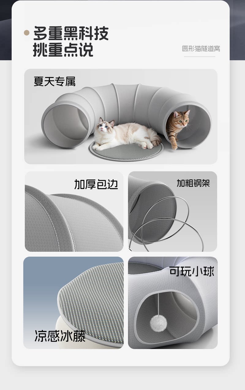 【POPO】貓咪隧道迷宮|室內行為豐容益智玩具,封閉式躲避屋與清爽夏季貓窩