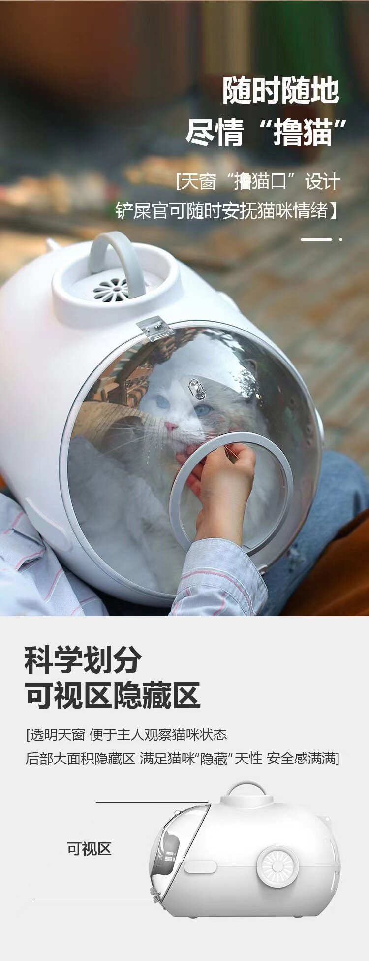 Upgraded version with light and fan white / Suitable for cats weighing up to 15 pounds
