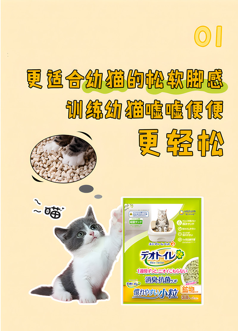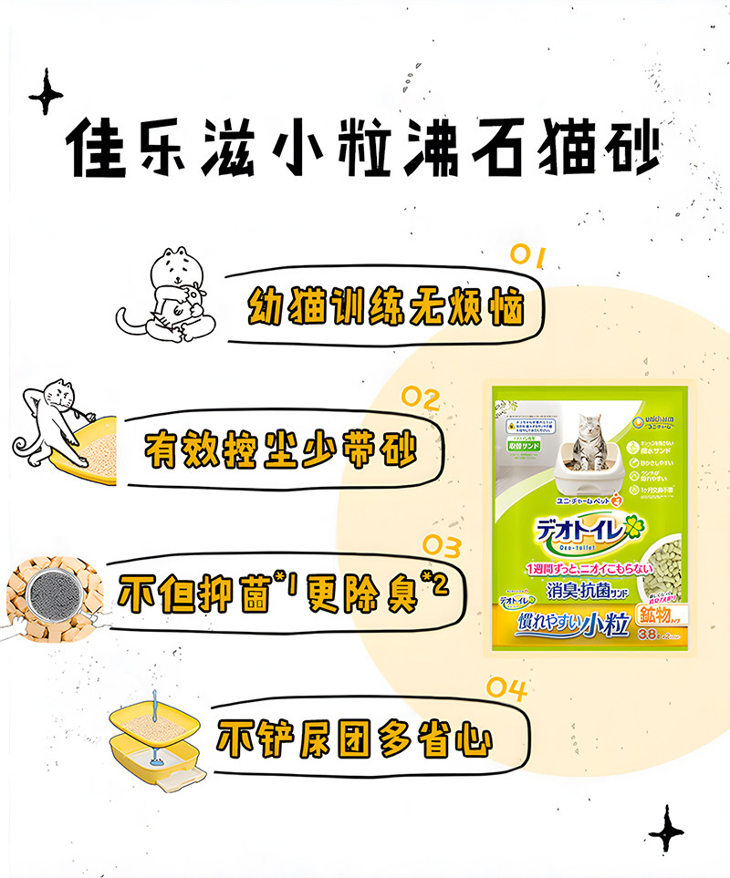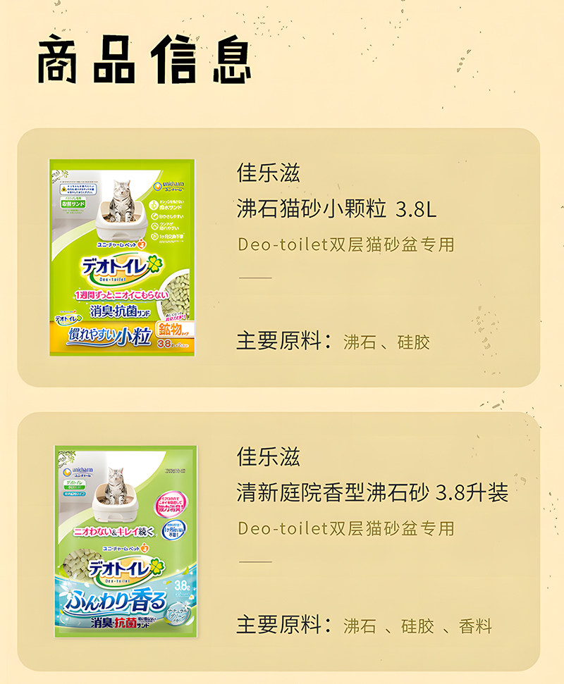 【3袋超值組】日本佳樂滋 Unicharm 消臭沸石砂 3.8L×3|小顆粒礦砂質感,雙層貓砂盆專用